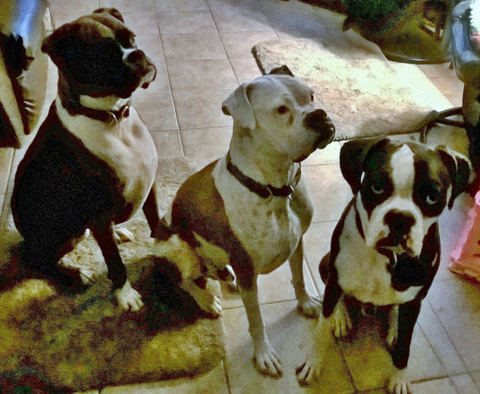 The boys had been together more than a couple years when we threw in a little sister. Even though at times she has overwhelmed both their patience, let anyone lay a finger on their little sister and their will both take that person or four legged fellow to task. She is their sister for better or worse. They have taught her every good and bad habit they possess and we remind them of that on a daily basis, just in case they need reminding. She is as cute as they come and wins them both over by naptime.