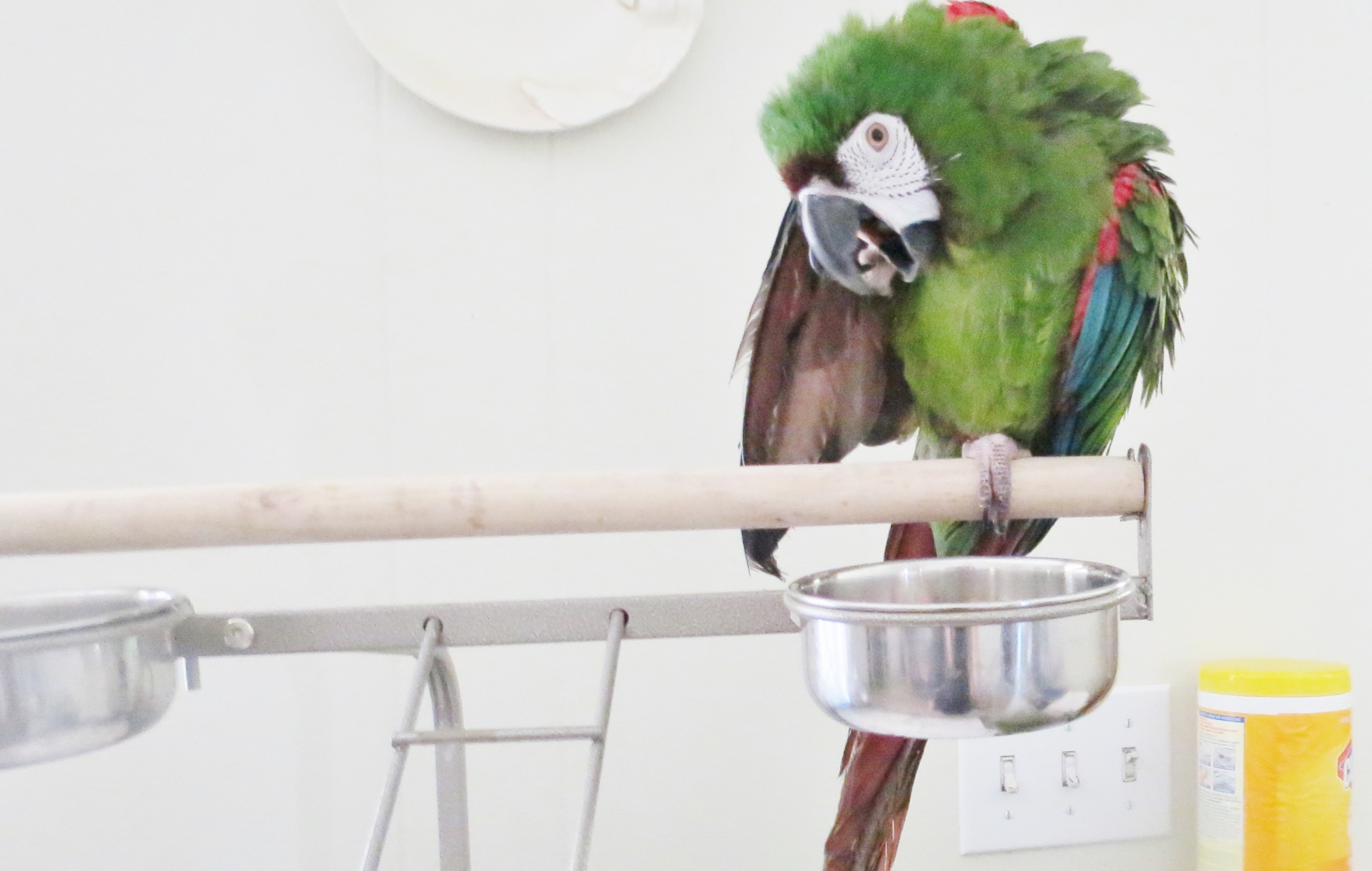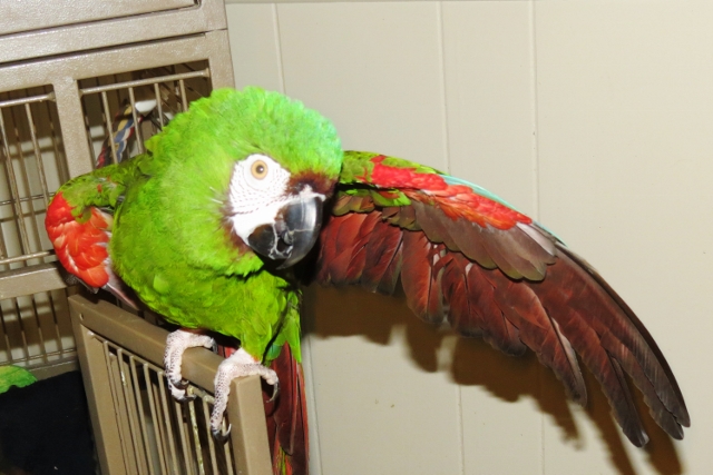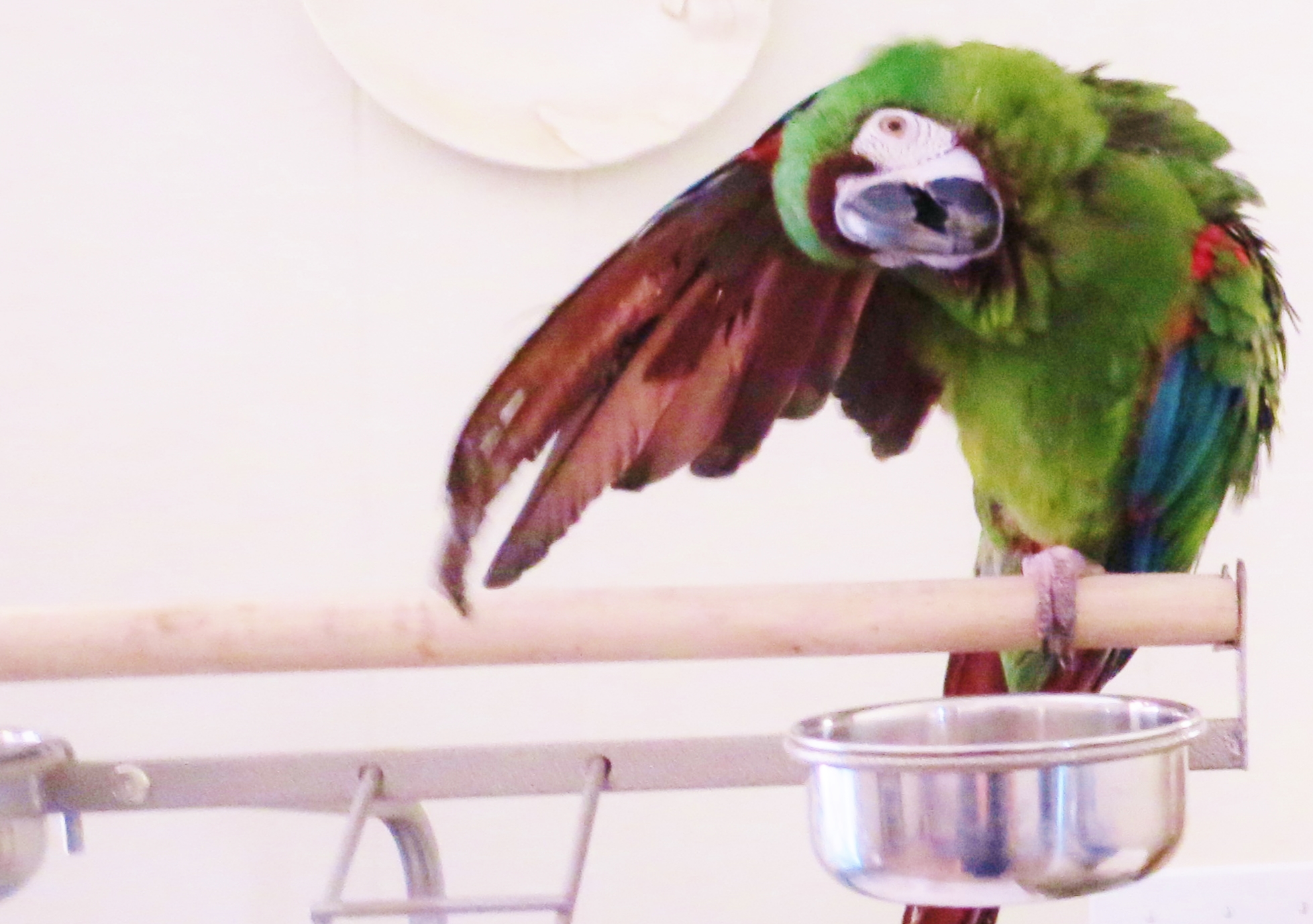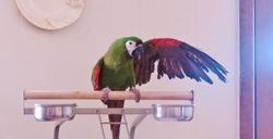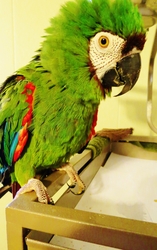 Emme bird is our emerald green severe macaw. She runs the roost. It took five years for us to know if she was male or female. You have to do a blood feather to see if they are male or female and everytime we took Emme in, she would hyperventilate at the Vets, and we would leave rather than have anything happen to her. The minute she was in the car, Emme would laugh. She had managed to pull the wool over the Vet's eye's one more time. After five years, Emme started laying eggs, so we knew Emme was a she. Emme can immitate voices, - she used to call the dogs in our mom's voice and they would come running for a treat- and when they would get to the house- she would laugh.hahaha. She picks up things from the horror flicks and will repeat them at the oddest hours of the morning. I swear she does it on purpose. When she wants a treat, she will say"C,mere" and you are suppose to come and bring her one. If you don't. It's "move it, move it." then "c,mere", She is a trip.